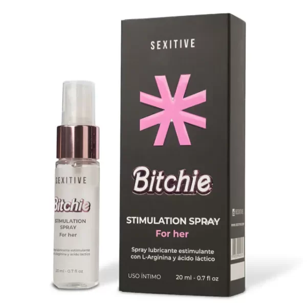 Prepárate para una experiencia completamente nueva con Bitchie, el spray estimulante multiorgásmico femenino de Sexitive que revoluciona el placer. Diseñado especialmente para potenciar la sensibilidad y aumentar el deseo, Bitchie despierta cada una de tus zonas más íntimas con una sensación cálida, vibrante y absolutamente placentera.